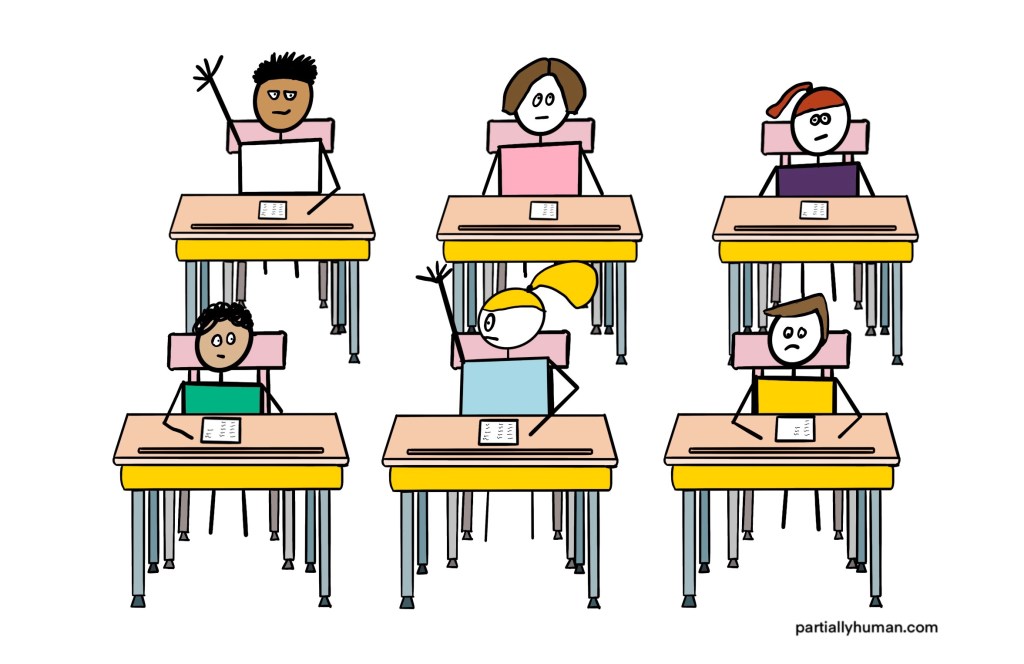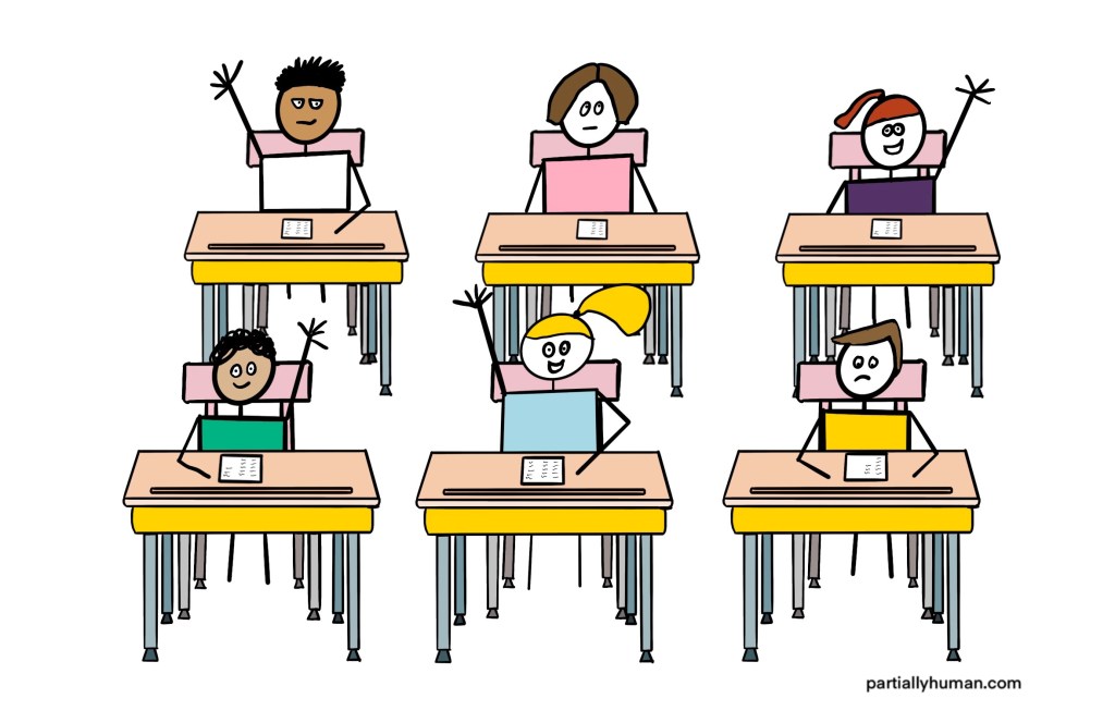 The teacher would then ask for a raise of hands to see who got more than 10 completed correctly, then 20, then 30, and on she would go eliminating people until she saw who got the most.